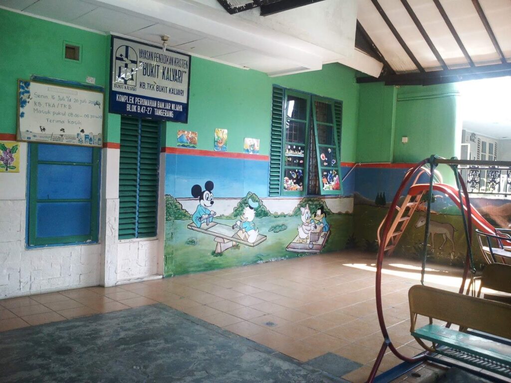 Berlokasi di dalam kawasan perumahan, TK Bukit Kalvari menawarkan suasana yang lebih tenang dan nyaman. Lingkungan cluster biasanya lebih aman dan tidak terlalu ramai kendaraan. Dengan rating sempurna dan jam belajar pagi hingga siang, sekolah ini cocok untuk orang tua yang mencari suasana belajar yang lebih kondusif dan fokus.